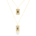 18K Real Gold 2 Layer Elegant Square Stone Necklace