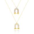 18K Real Gold 2 Layer U-Linked Stone Necklace