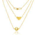 18K Real Gold 3 Layer Necklace (Heart, U-Link, Ball)