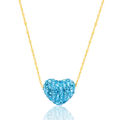 18K Real Gold Swarski Crystal Blue Heart Necklace